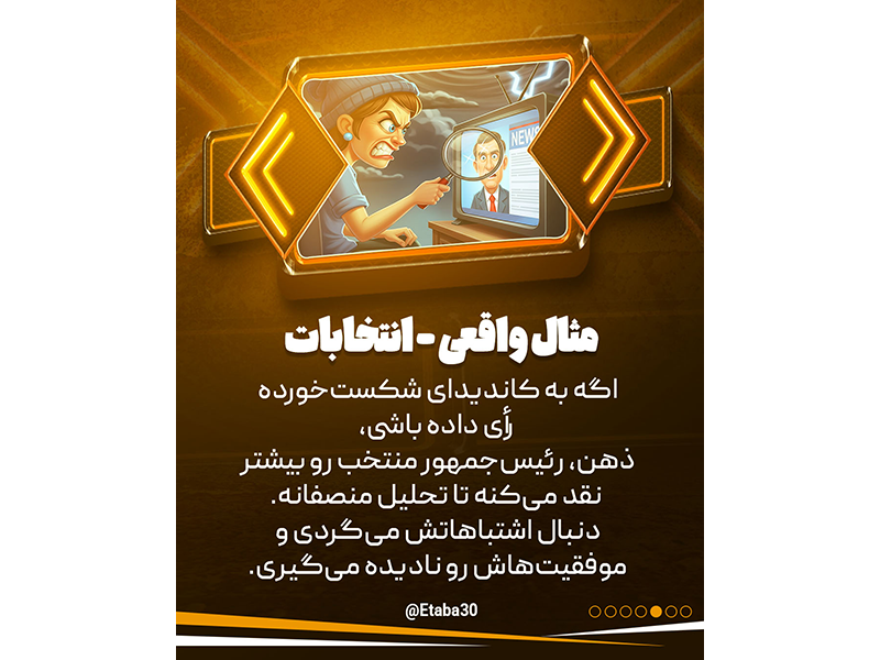 تو این پست با یه مثال واقعی (انتخابات) بررسی میکنیم چرا بعضیها فقط بدیهای جناح مخالف رو میبینن و چطوری ذهنشون ناخودآگاه دنبال تأیید خودش میگرده.